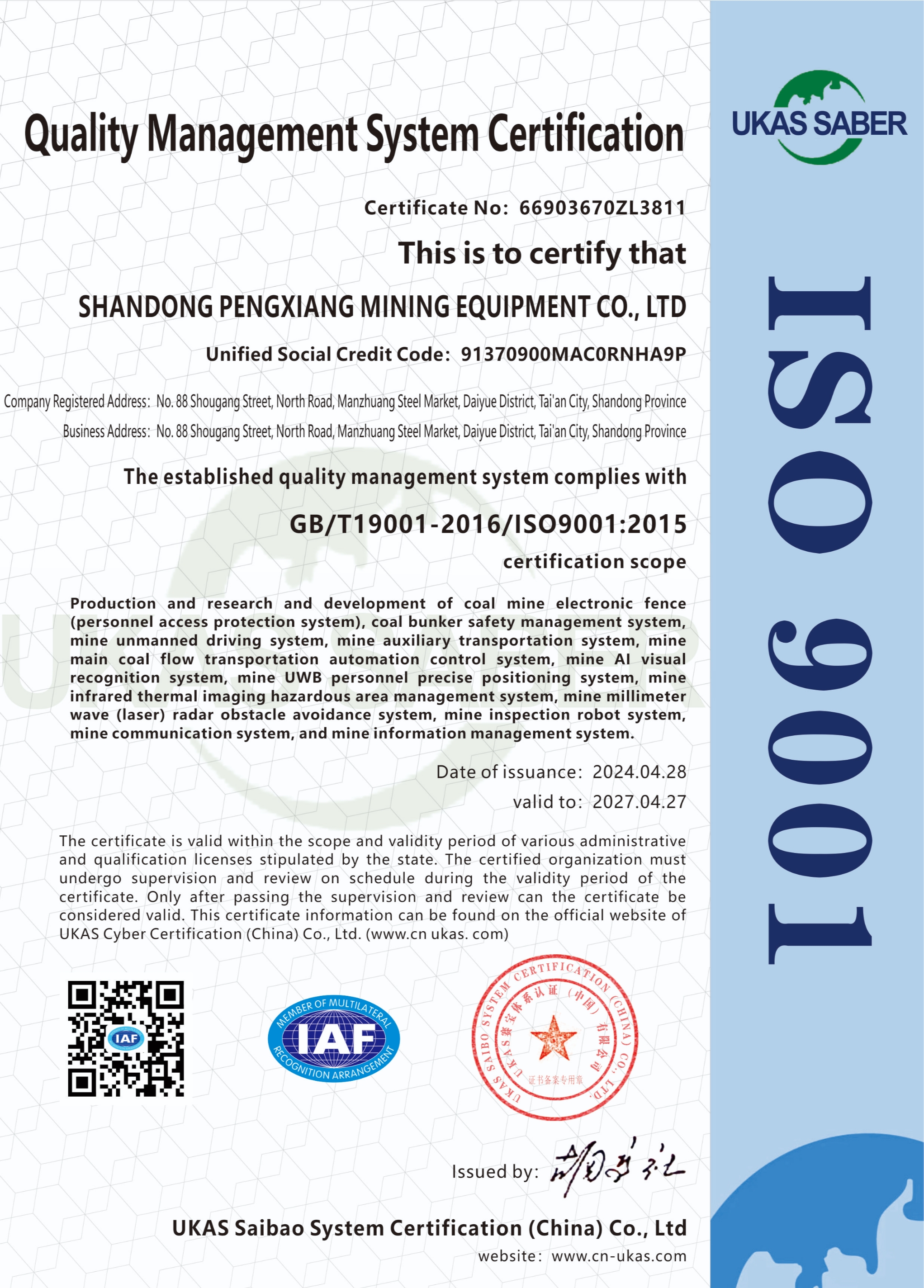 The company owns 14 software copyrights, 3 invention patents and 5 utility model patents. It has also cooperated with Shandong University of Science and Technology and Shandong University, digesting and absorbing the research achievements of several professors in robotics, artificial intelligence and visual recognition, and applying them to the manufacturing of mine locomotive track dispatching systems and coal mine signal centralized blocking systems.